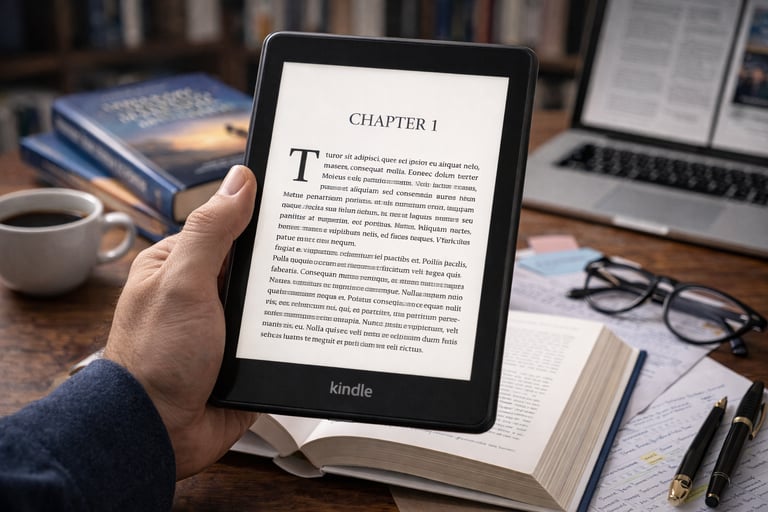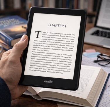 Adaptamos tu manuscrito a formato digital compatible con dispositivos Kindle, aplicando estilos, estructura y tabla de contenidos interactiva.